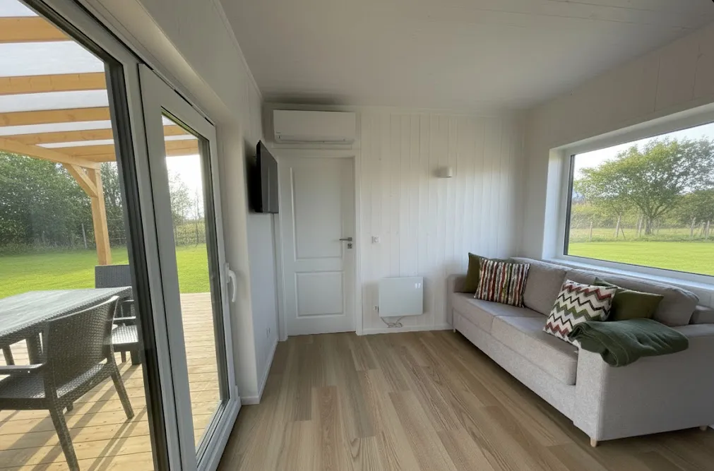Każdy dom oferuje komfortową przestrzeń dla 4-6 osób. Jest parterowy. Harmonijne połączenie nowoczesnego designu z naturalnymi materiałami tworzy atmosferę spokoju i domowego ciepła.